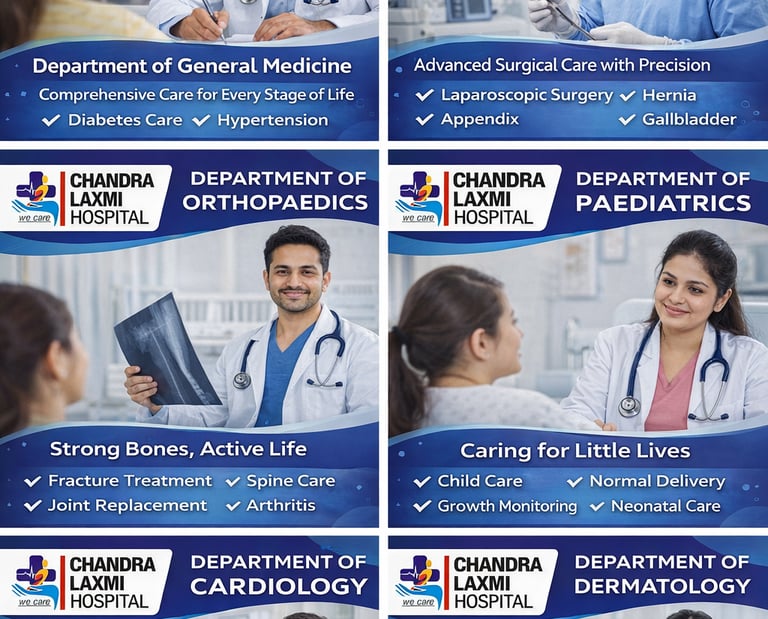 The Department of Orthopedics provides comprehensive care for disorders related to bones, joints, muscles, ligaments, and the spine. The department focuses on accurate diagnosis, effective treatment, and rehabilitation of musculoskeletal conditions to restore mobility and improve quality of life.